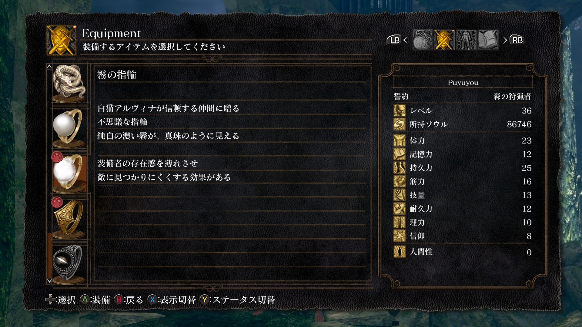 そういえばこの前侵入こなして霧の指輪ゲットしたんだった🥺