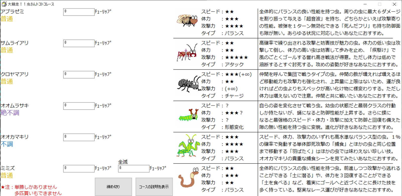 【賭場】寝る前の虫さんトコトコレース【23:15出走】