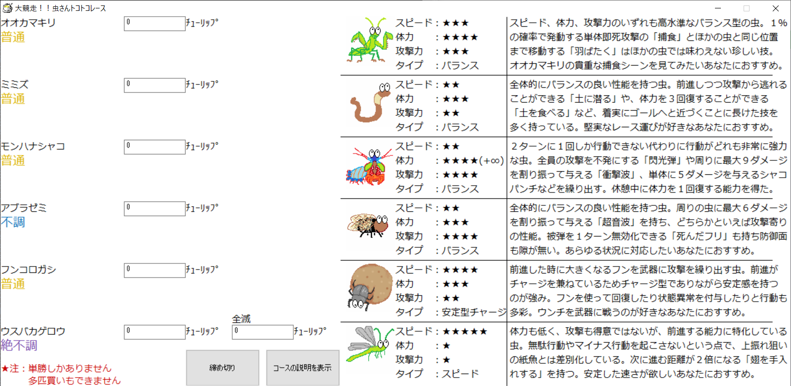 【虫さんトコトコレースの楽しみ方〜賭場版〜】
