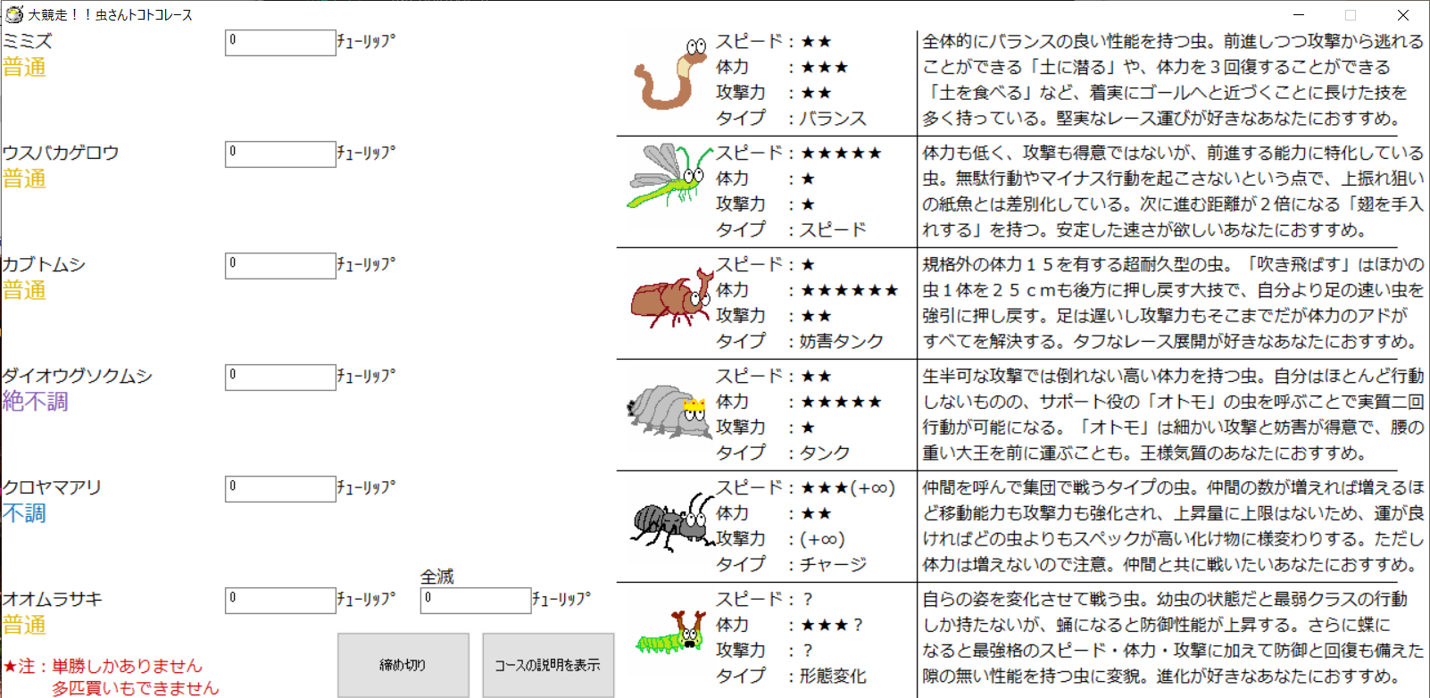 【虫さんトコトコレースの楽しみ方〜賭場版〜】