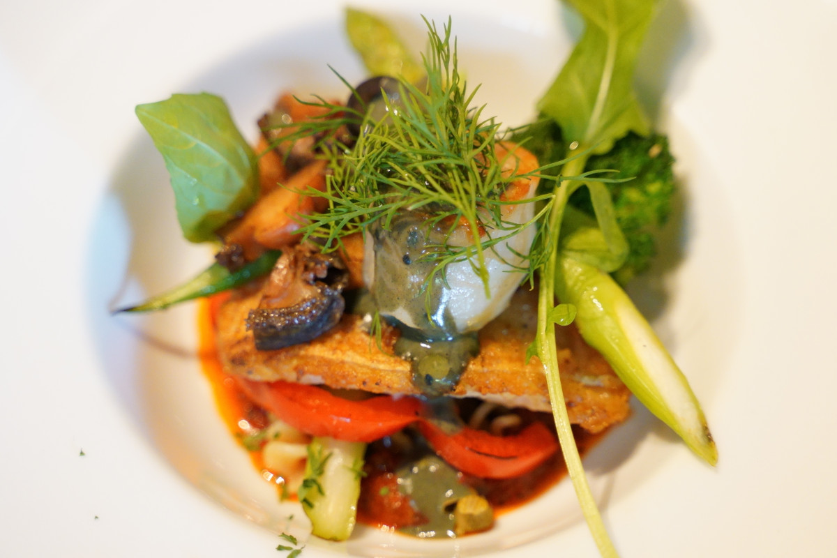 永瀬九段が「鮮魚のポワレ ホタテ貝とアワビのグリル 〜友好都市八雲町(北海道)から愛をこめて〜 完熟トマトを使用したソースとアワビの肝を使ったソースで(エビフライ付き)、パンとライス(半分)」、「コーヒー (トアルコトラジャTOARCO TRAJA)ICE」、「ブドウ畑のピーチネクター Patrick Font(フランス)」。