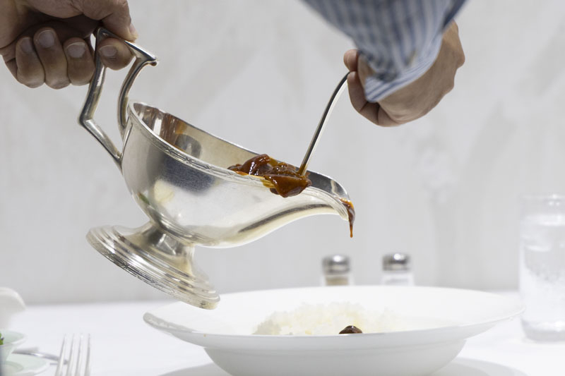 昼食の注文は藤井が「淡路島産オニオンのハヤシライス」と「アイスストレートティー」、伊藤が「神戸ビーフの赤ワイン煮込みオムライス」と「黒ウーロン茶」。