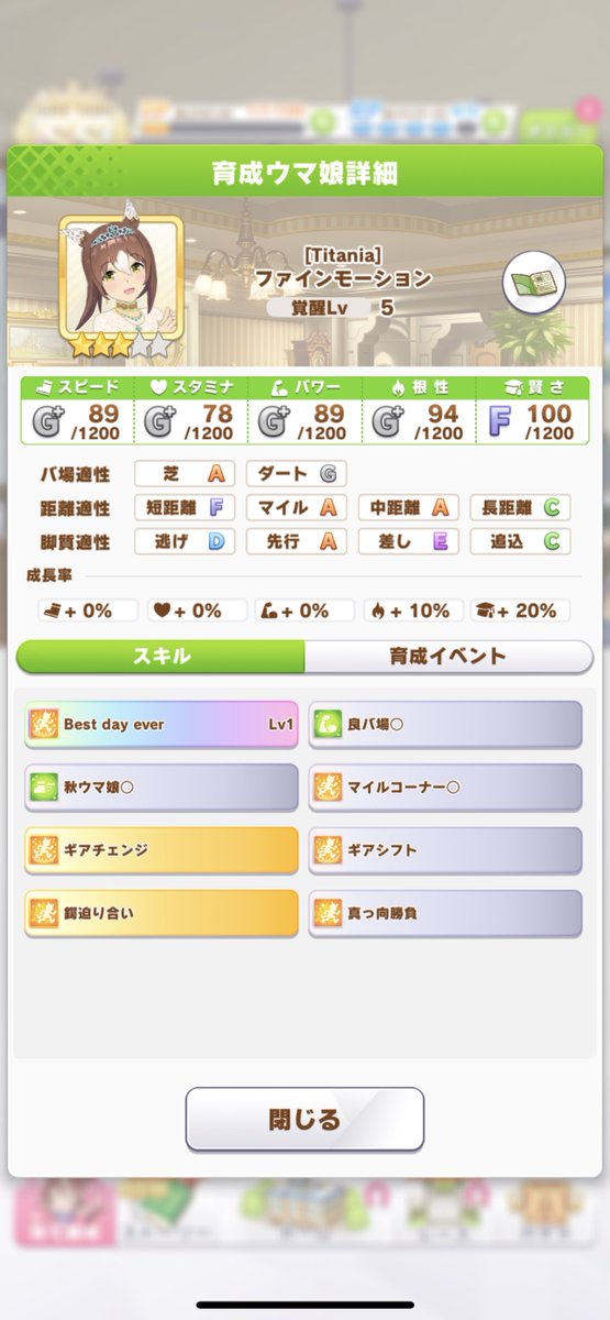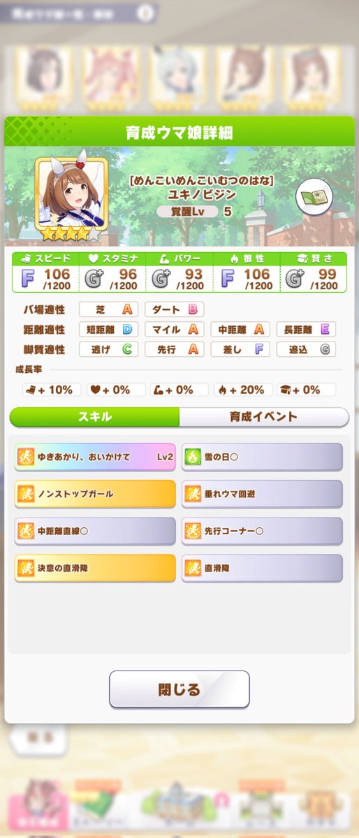 後ろ脚質はライアンと遅らせ発動想定の赤マル辺りの因子が候補か