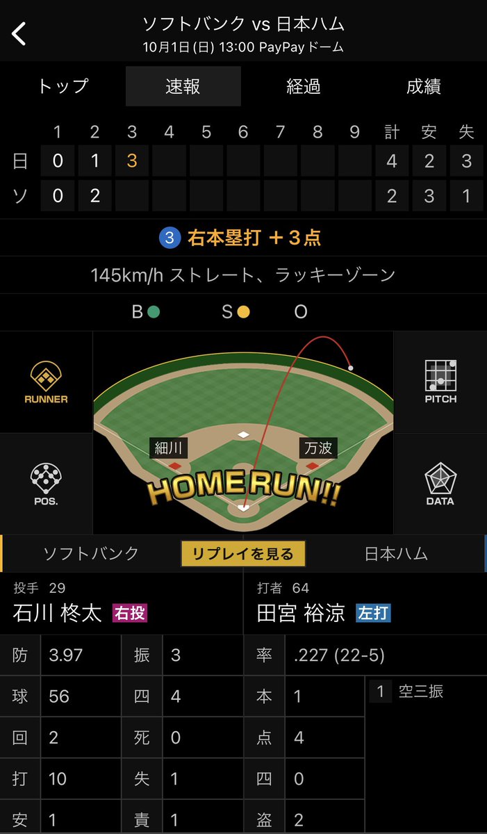 ホームランが一番効率的なハムの得点方法