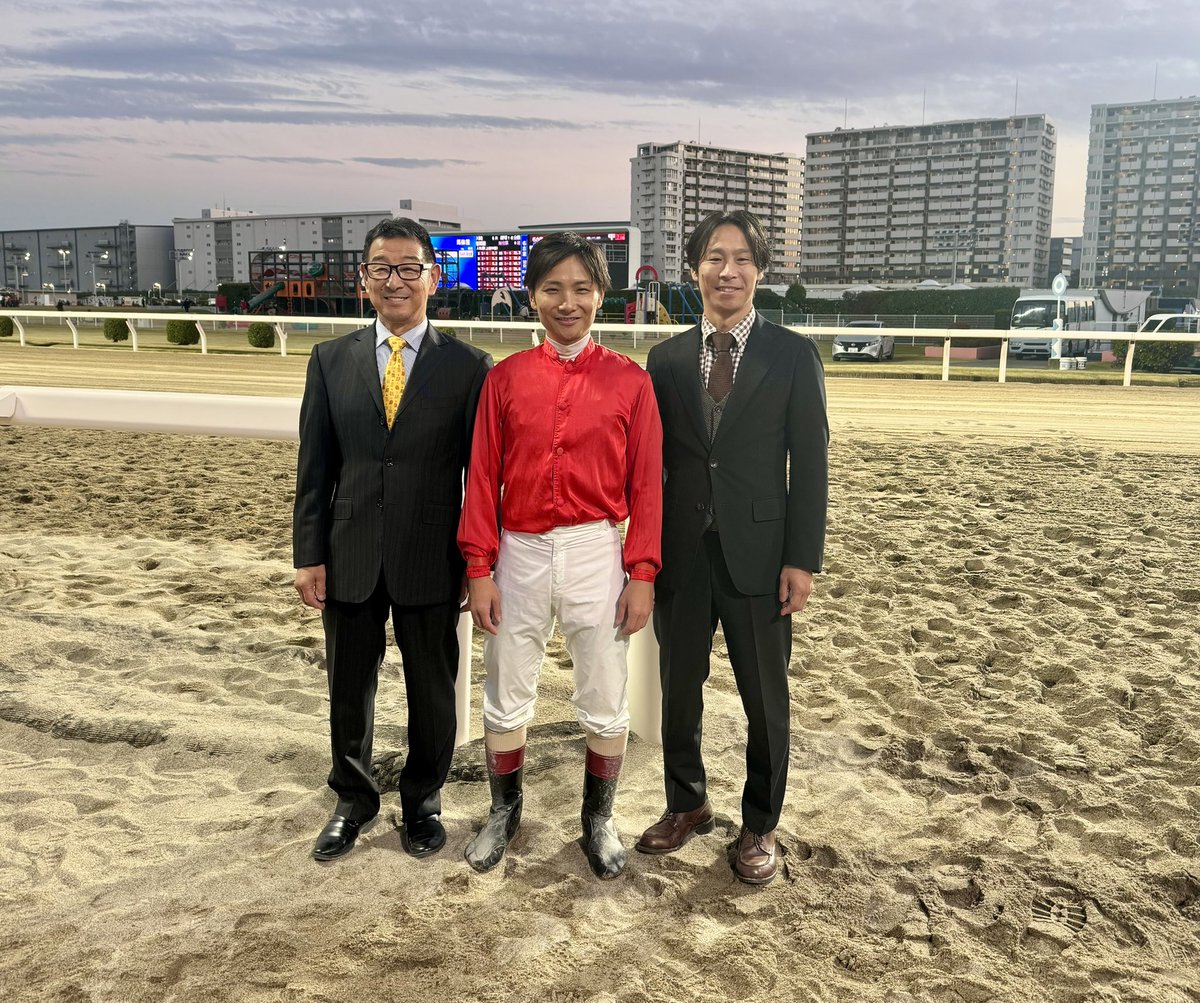 WJSSでマイネルの勝負服着てニヤニヤするタッケとノリの写真すこ
