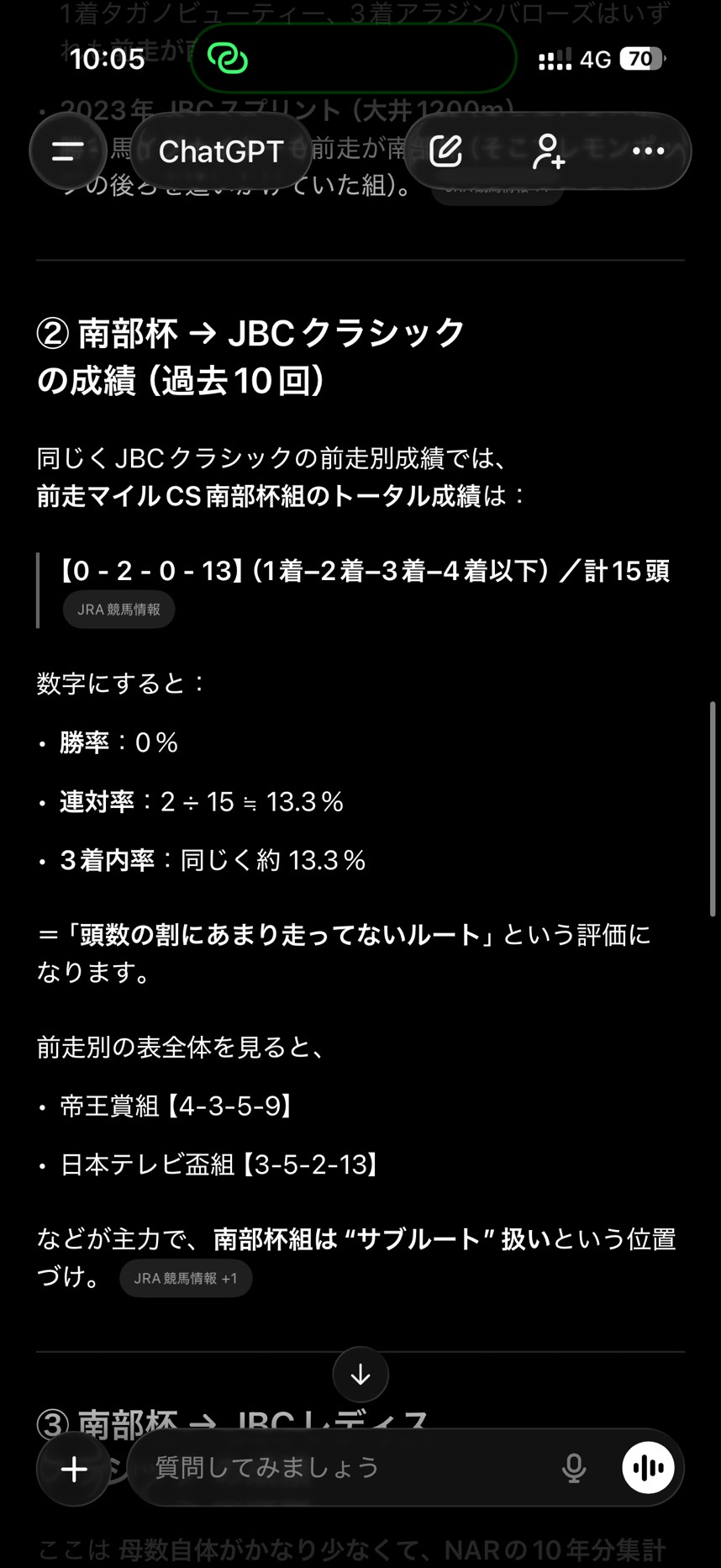 前走JBCレディスクラシックのチャンピオンズC成績 1-0-0-3