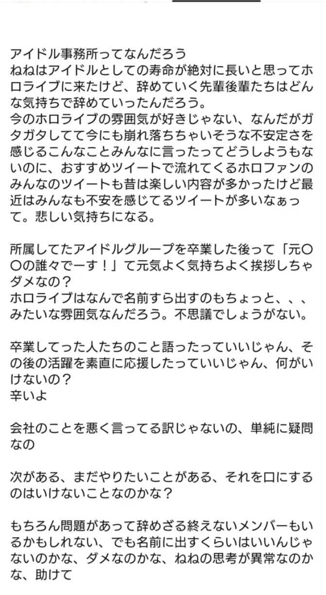 ・早めに会社と「出るか出ないか」を相談していたが、ころねが「出ない」と伝えるのが少し遅かったのかもしれない
