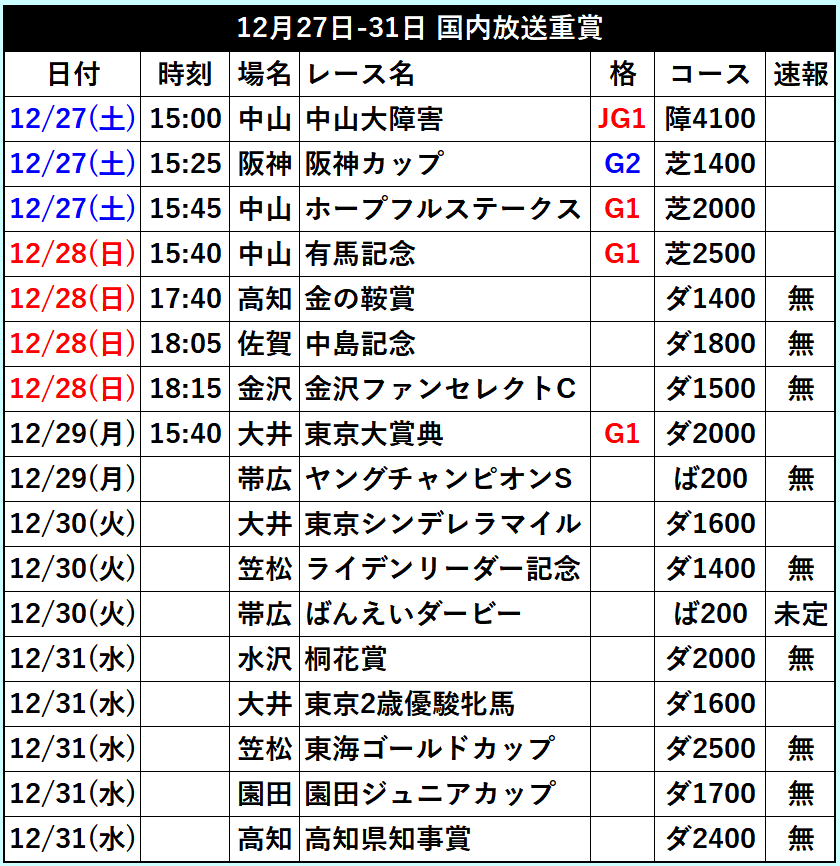 ●東大終わってもすぐ金杯がやってくる