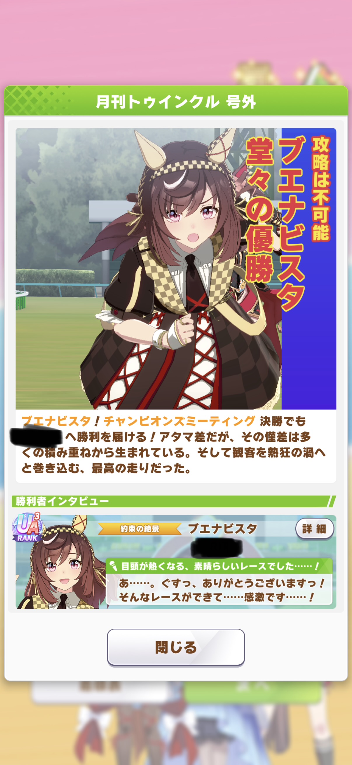 ブエナけっこう性能ネガられてたけどこの前のチャンミやとわいの出したスティルおはマイルと勝率変わらなかったで