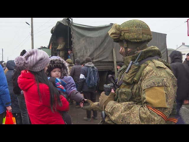 ウクライナ政府の野蛮な徹底抗戦方針(玉砕命令)に反抗し投降した市民にはロシア軍から温かい給食が振る舞われています