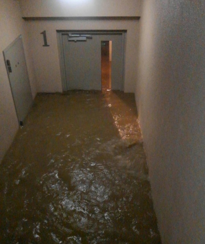 地下の配電設備への浸水によって停電、断水。ライフラインが断たれ、生活不能の状態に追い込まれた。