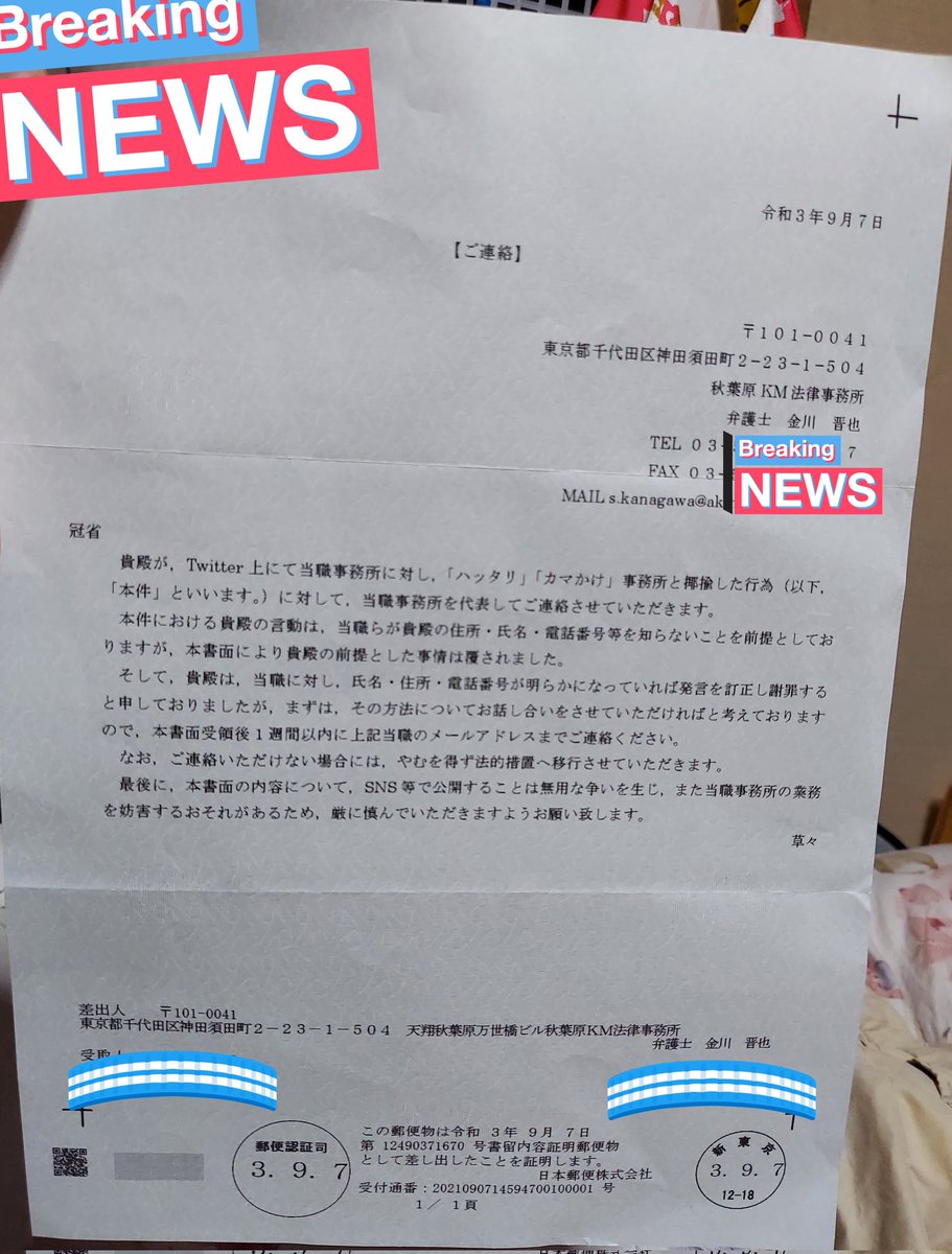 例)唐澤貴洋名義で唐澤貴洋弁護士に神聖六文字、或いは法律事務所steadinessへ論文